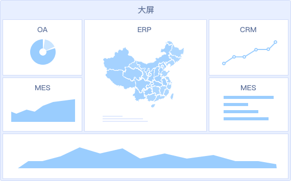- 同一個大屏看板可以輕松整合ERP/OA/MES等多業(yè)務(wù)系統(tǒng)的數(shù)據(jù),打破信息孤島,進行綜合展示分析,讓決策更清晰
