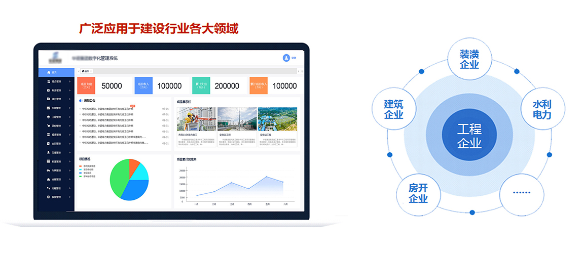 數(shù)字化管理系統(tǒng)對企業(yè)工程項目從項目投標(biāo)中標(biāo)、項目過程管理、合同管理、物資設(shè)備管理、采購管理、項目過程管理、施工隊管理、供應(yīng)商、成本核算等進(jìn)行全面綜合管理;縱向貫穿投標(biāo)、采購、施工、竣工的全過程,橫向涉及公司內(nèi)部的各相關(guān)崗位,是一套全方位、集成的企業(yè)項目綜合管理平臺。通過對成本、進(jìn)度、質(zhì)量、安全等方面的控制,以及對合同、結(jié)算、支付、資金等要素的管理,來提高工程類企業(yè)對工程項目的綜合配套能力。